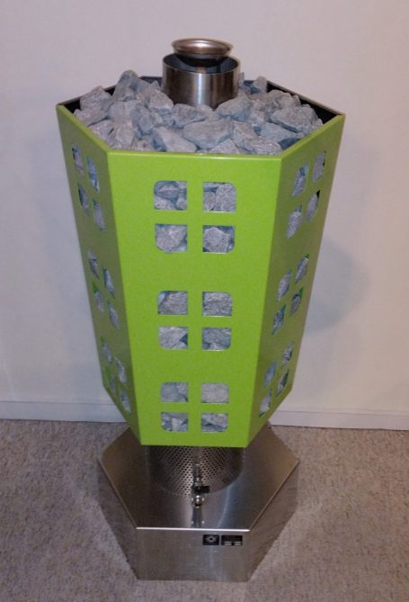 EXCLUSIVE Baureihe der Premium-KLasse. Hochwertige Baureihe aus Edelstahl, "COLOR-Baureihe" auf Wunsch beschichtet mit RAL-spez. Farben. 6 Eck Form. Die exclusive COLOR-Baureihe bringt Farbe in die Kabine. Bei größeren Glasflächen ein ganz besonderer Blickpunkt und Athmosphäre. Leistungen in 6.0...7.5...9...kW