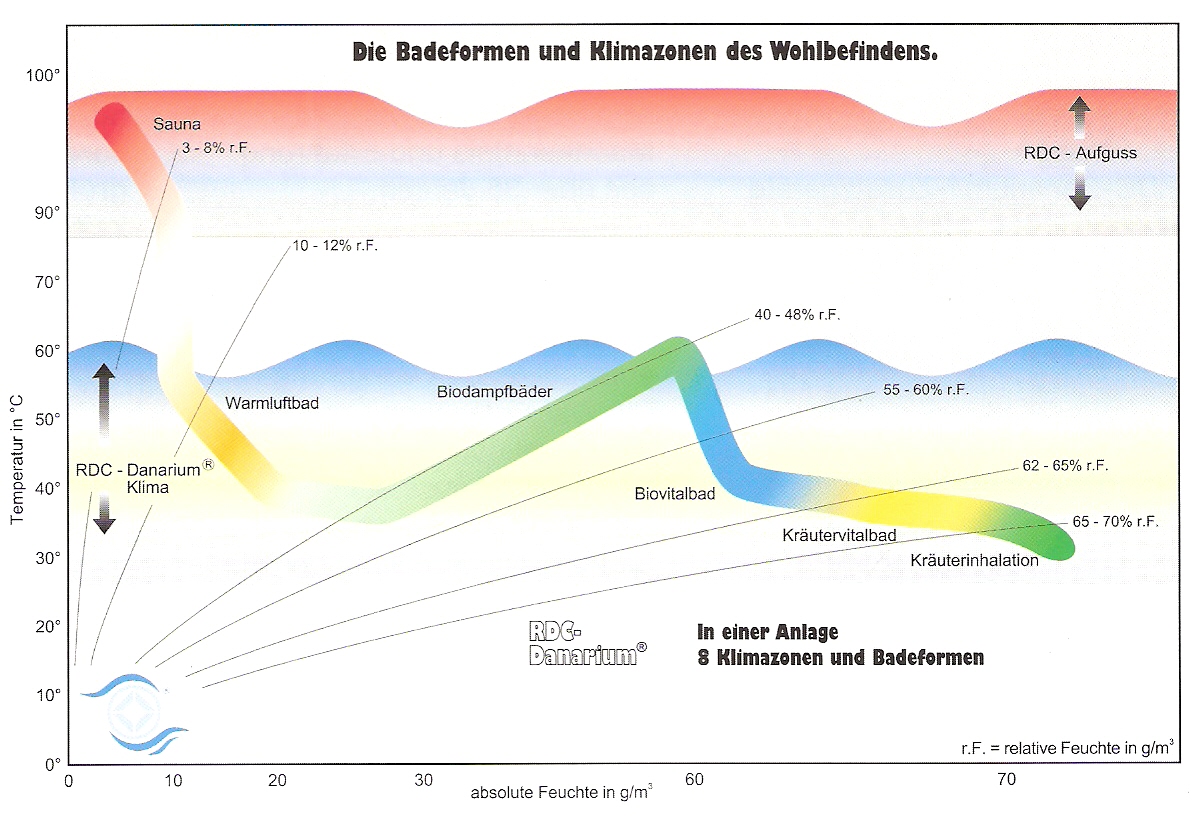 Die Symbiose für ein "Wohlfühlklima" entsteht durch das Zusammenwirken und Equipment für Temperatur...Feuchtigkeit..."vertikale Konvektions-Wärme und "horizontaler" Infrarot-Wärmestrahlung... vorzugsweise "C" oder mit den IR-Modulen für "A-B-C" Wellenlänge , im "Danarium 3000".