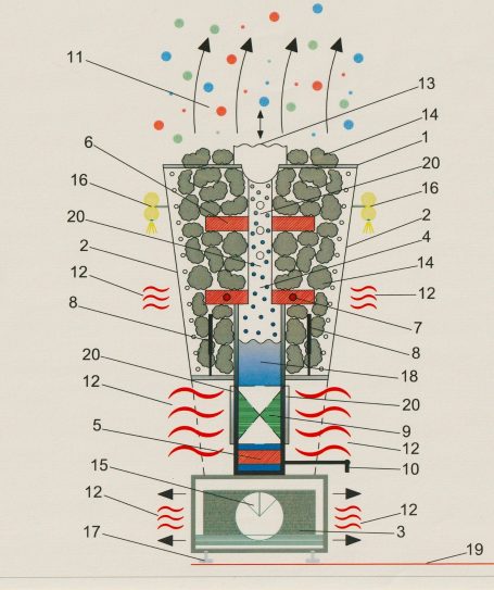 Eine Besonderheit ist die vertikale Konvektions-Wärme kombiniert +regelbar mit entsprechenden Füllungen der RHK-Heizkörper und der horizontalen Infrarot- Wärmestrahlung , wahlweise in Wellenlänge A-B-C * ! (ärztliche Beratung bei Infrarot "A"-"B" immer empfehlenswert )