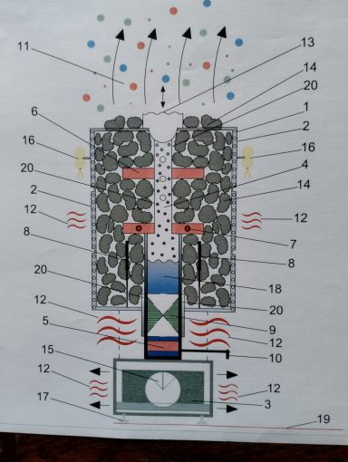 "HELLO AGAIN "... Los geht`s . Mit dem Einschalten über das Steuergerät der "vertikalen" Konvektionswärme-Entwicklung in die Kabine, auf ca. 50-75 Grad, wird die Wärme durch die Sorptionsfähigkeit der Holz-Innenverkleidug von dieser augenommen und wieder abgestrahlt. Gleichzeitig werden die Aufguß-Steine erhitzt und geben ebenfalls die Speicher-Wärme langwellig mehr "horizontal" in die Kabine. Der obere abgeteilte Bereich der erhitzten Aufguß-Steine kann für einen energiesparenden" Bio-Soft-Aufguß" ,den MASTER-LÖYLY sehr bald angewendet werden. Somit entsteht eine erste Symbiose von Wärme und Feuchtigket . Bei Wunsch einer höheren Luftfeuchtikeit oder Inhalationen kommt die weltweit zig-tausendfach bewährte DANARIUM-Technik zum Einsatz. "ALL in ONE " roda*
